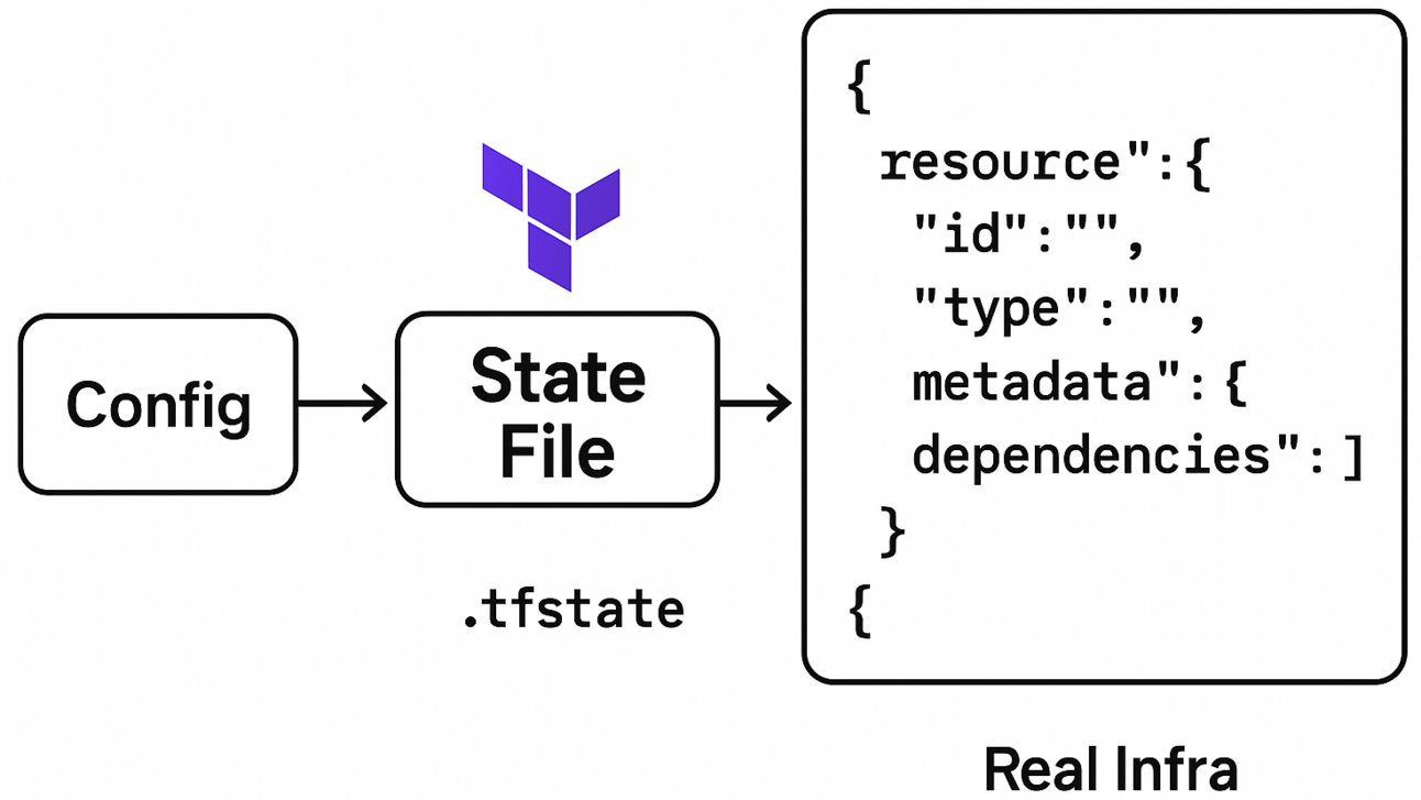 Terraform compares this file against your .tf configuration to know what to create, update, or destroy.