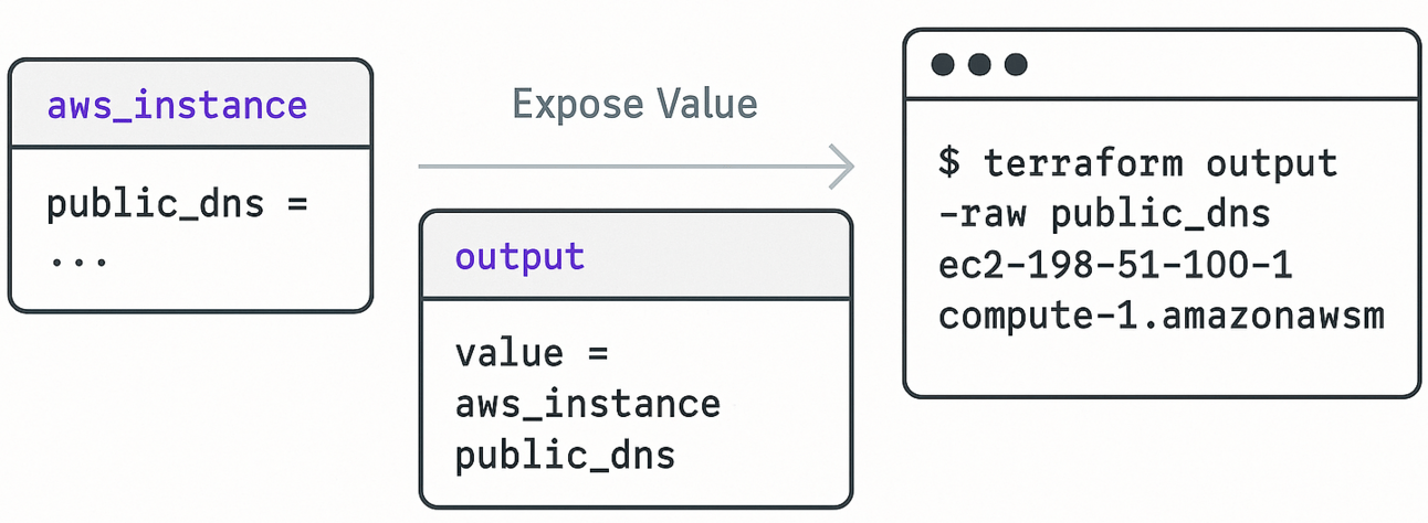Terraform outputs expose values from your configuration.